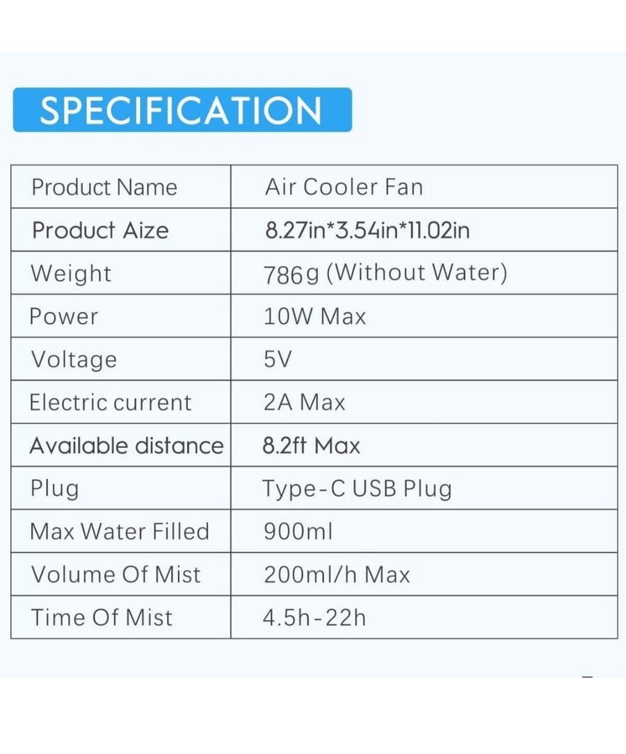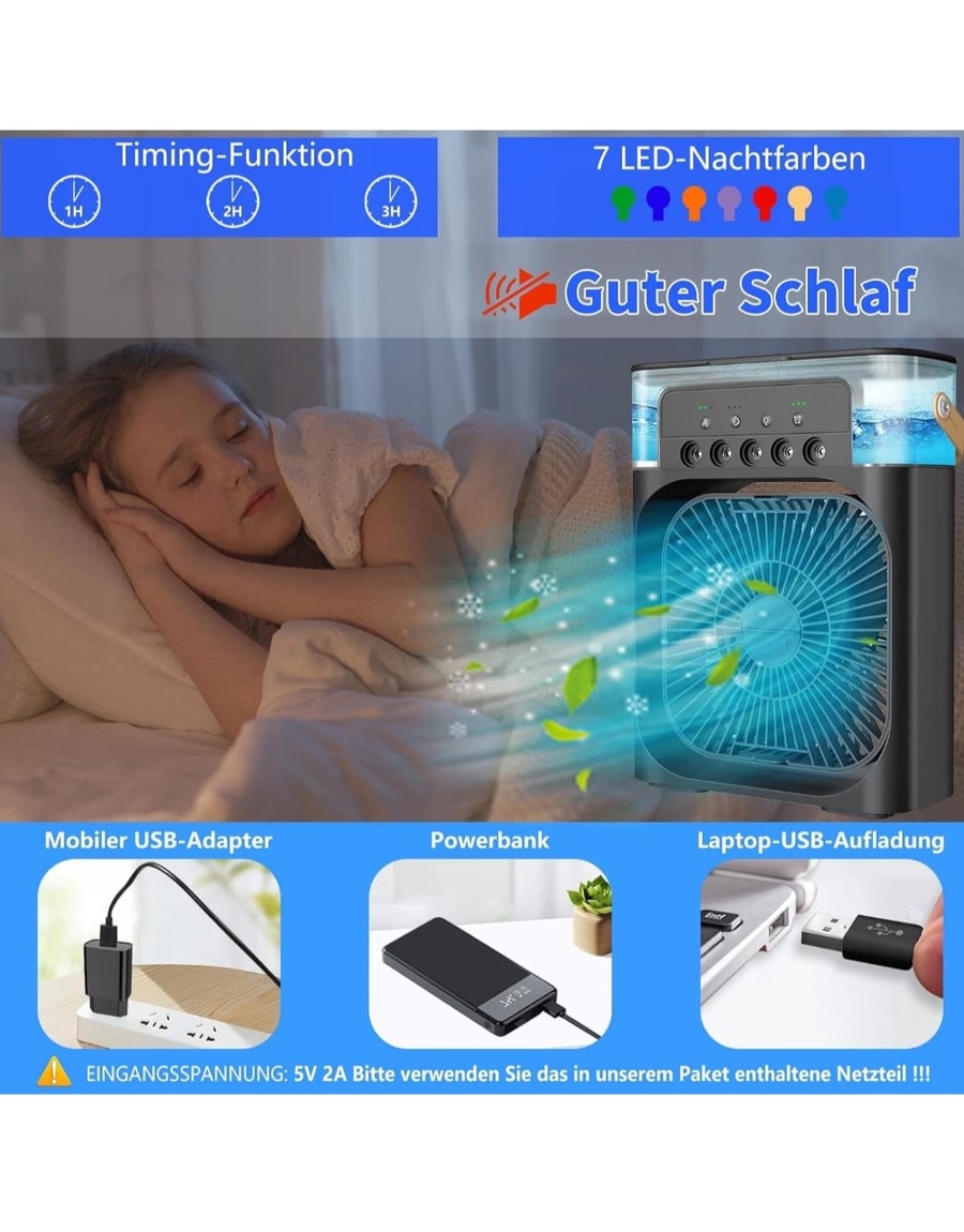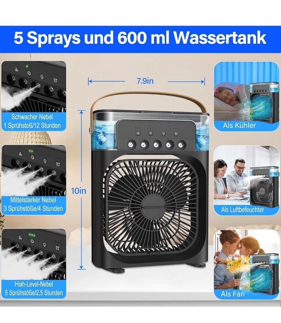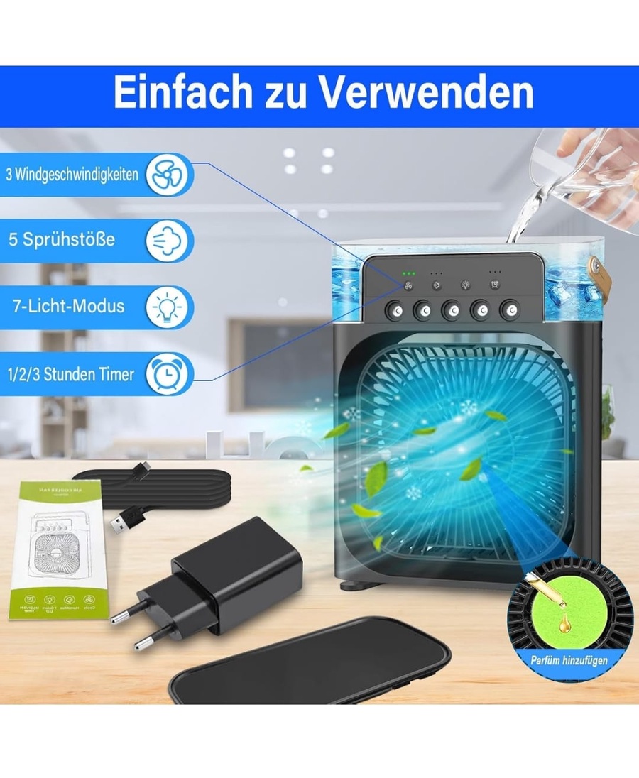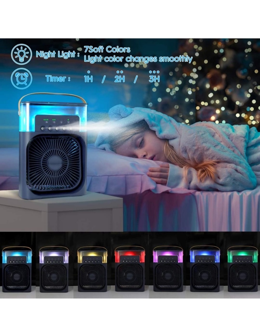 استمتع بالانتعاش في كل مكان مع مبرد الهواء المحمول 4×1، اللي هيخلي الصيف أسهل وأريح. 💨 هذا الجهاز الرائع يجمع بين المروحة، الفواحة، الترطيب، والتبريد في جهاز واحد مدمج ومتميز.