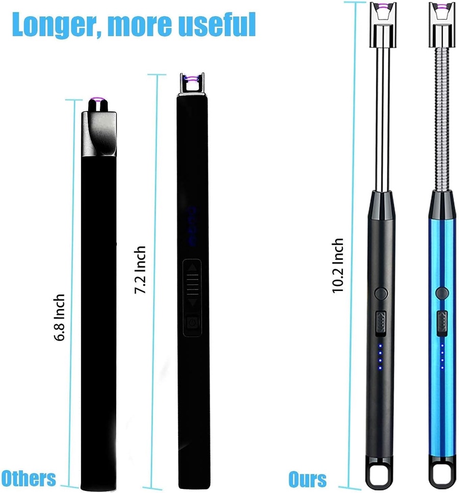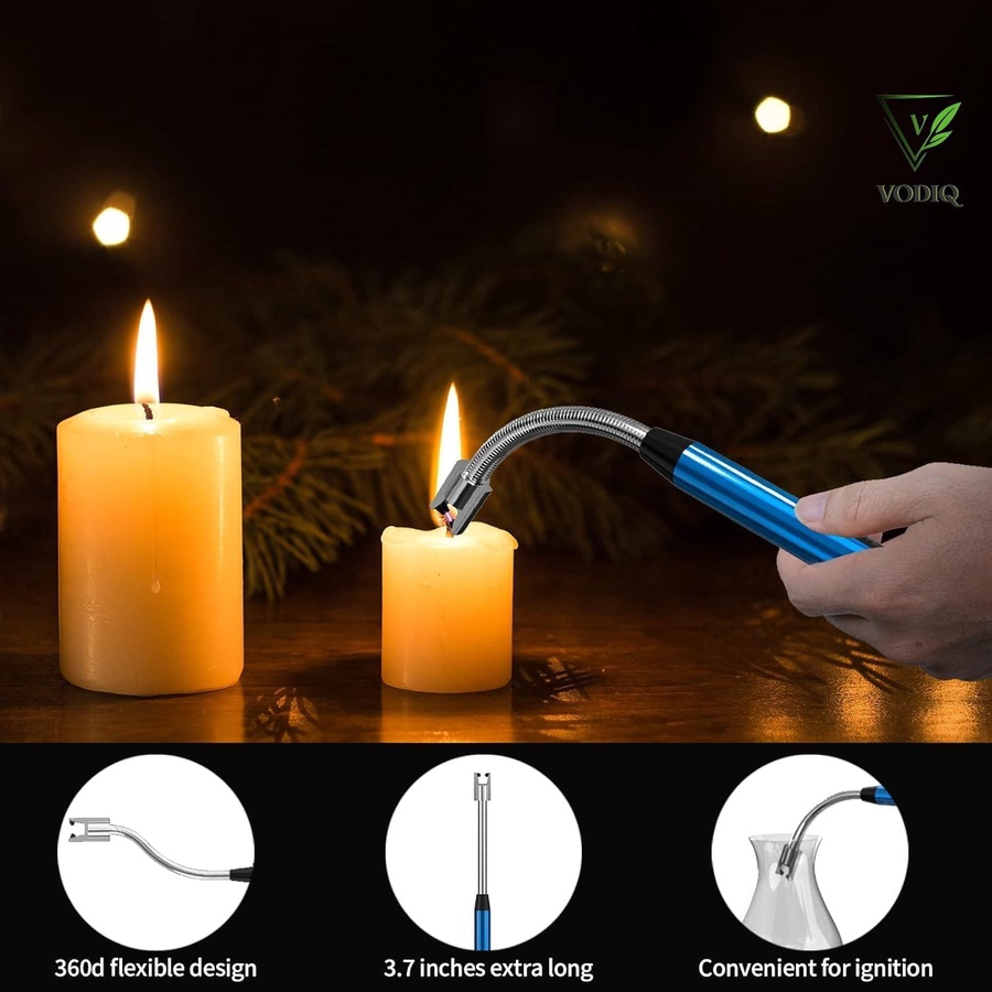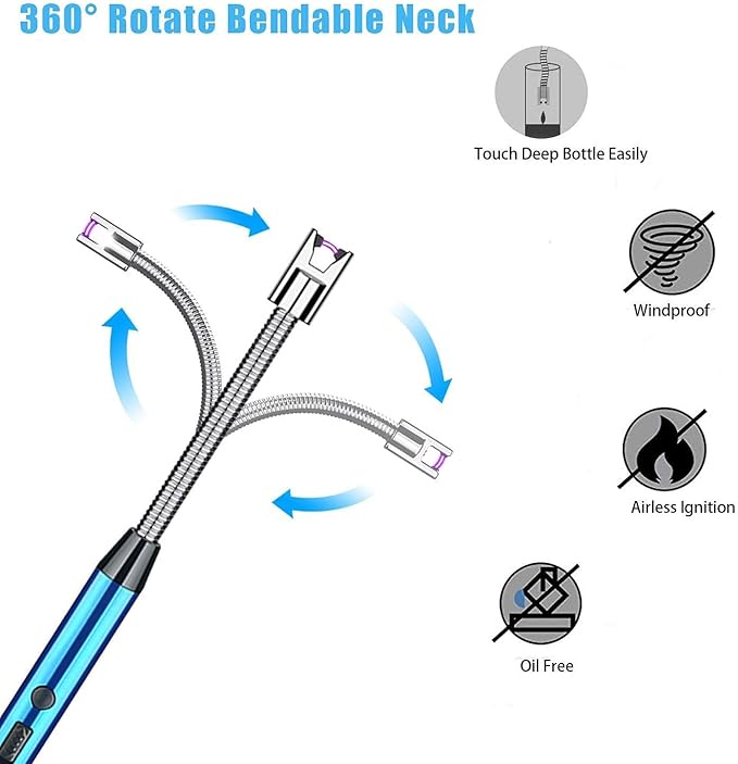 ولاعة كهرباء USB مرنة 360° بدون غاز، آمنة وسريعة الاشتعال، مثالية للبوتاجاز والشمع والفحم مع مؤشر بطارية LED وتصميم عملي.
