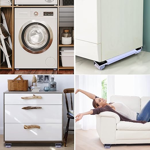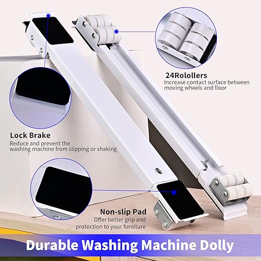 قاعدة غسالة متحركة بـ24 عجلة وفرامل أمان، بتسهّل تحريك الغسالة وتثبتها وقت التشغيل، تقلل الاهتزاز وتحمي الأرضية. مناسبة لكل الأجهزة الثقيلة.