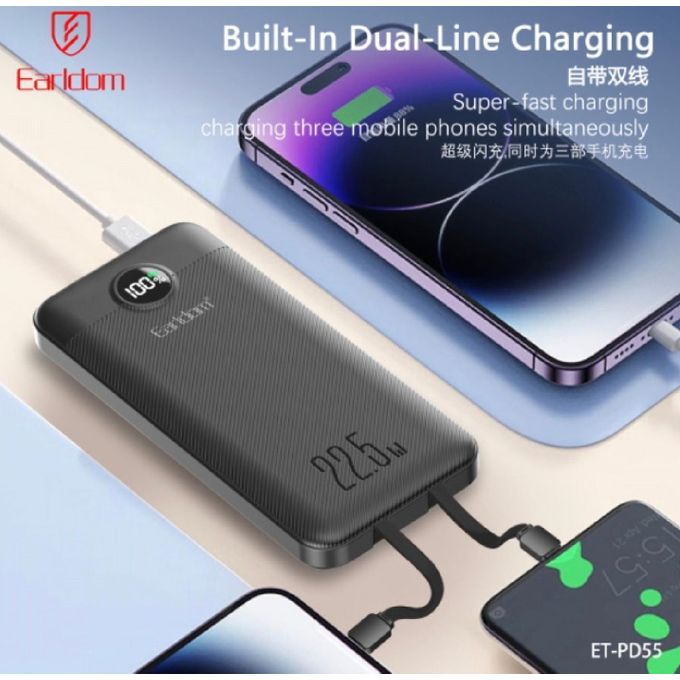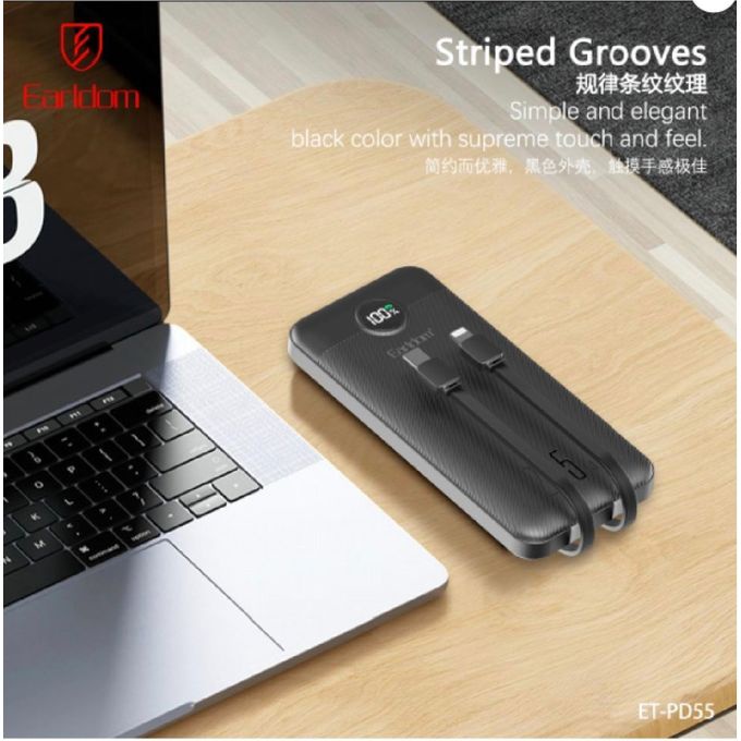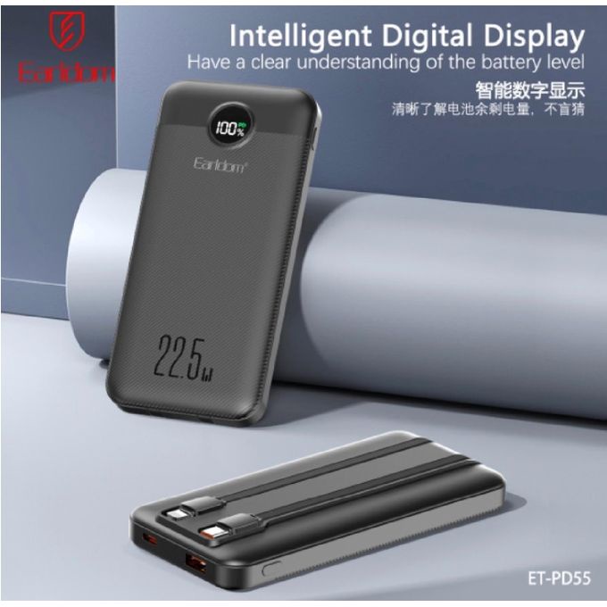باور بانك Earldom 10000mAh بشحن سريع 22.5W وPD 55W مع كابلات مدمجة 4 في 1 – عملي وسريع وآمن لكل أجهزة الموبايل 🔥