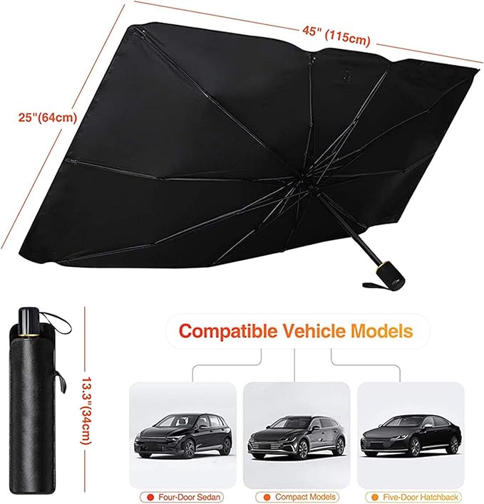 استمتع بتجربة قيادة مريحة وآمنة مع مظلة السيارة متعددة الوظائف! مصنوعة من مواد مقاومة للحرارة وصديقة للبيئة، بتصميم مبتكر يوفر لك مساحة وسهولة في الاستخدام والتخزين. تميزت هذه المظلة بوظائف فعالة في مكافحة الأشعة فوق البنفسجية وحماية السيارة من الحرارة، مما يحافظ على المقاعد ولوحة القيادة من التشقق بسبب التعرض لأشعة الشمس.