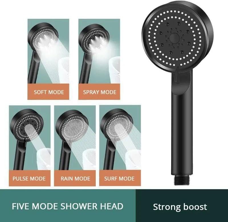 دش يدوي أسود مودرن بزر إيقاف للمياه، تصميم عملي وضغط قوي يوفر استهلاك المياه وسهل التركيب ومناسب لكل الحمامات