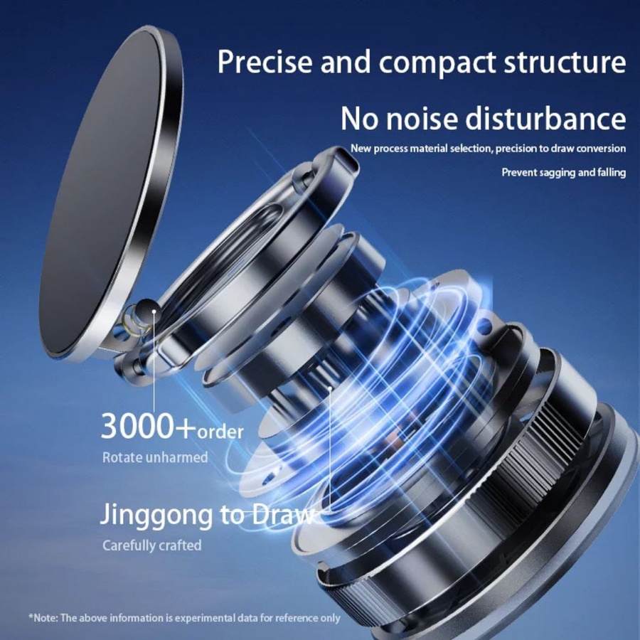 يتميز الحامل بإمكانية الدوران 360°، مما يتيح لك ضبط زاوية الرؤية حسب احتياجك بكل سهولة. حجمه الصغير والخفيف لا يعيق الرؤية أو يشغل مساحة كبيرة في سيارتك. كما أنه سهل التركيب والإزالة بدون الحاجة لأدوات معقدة، وهو متوافق مع جميع أنواع الهواتف الذكية.