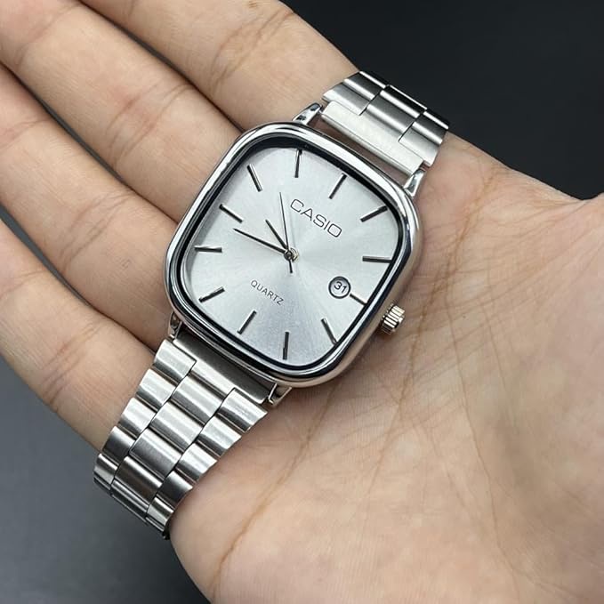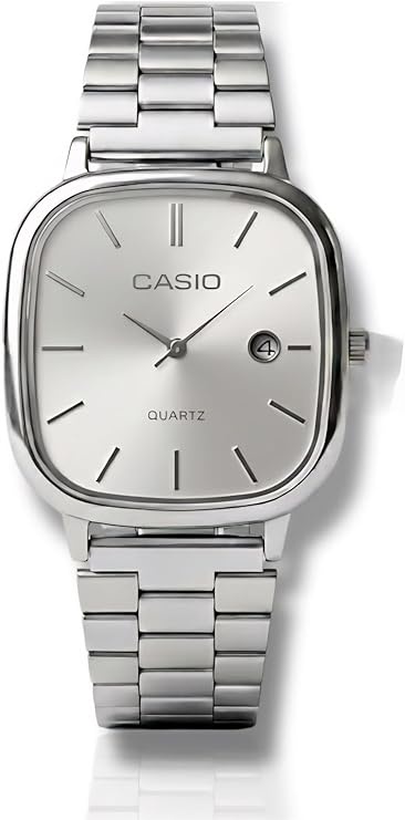 ساعة كاسيو كوارتز رجالي بتصميم كلاسيك أنيق، سوار معدني ونافذة تاريخ، مناسبة للاستخدام اليومي والإطلالات الرسمية والكاجوال.