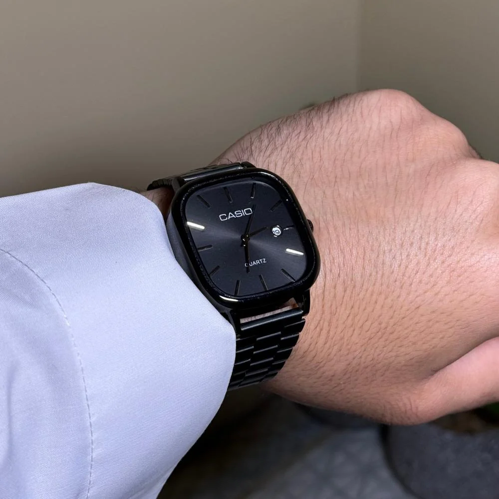 إذا كنت بتدور على ساعة تجمع بين الفخامة والدقة، فساعة كاسيو كوارتز هي اختيارك المثالي! تصميمها الرجالي الأنيق مع حركة Quartz يضمن لك عرض الوقت بدقة عالية. كمان فيها نافذة تاريخ جانبية تسهل عليك متابعة الأيام.