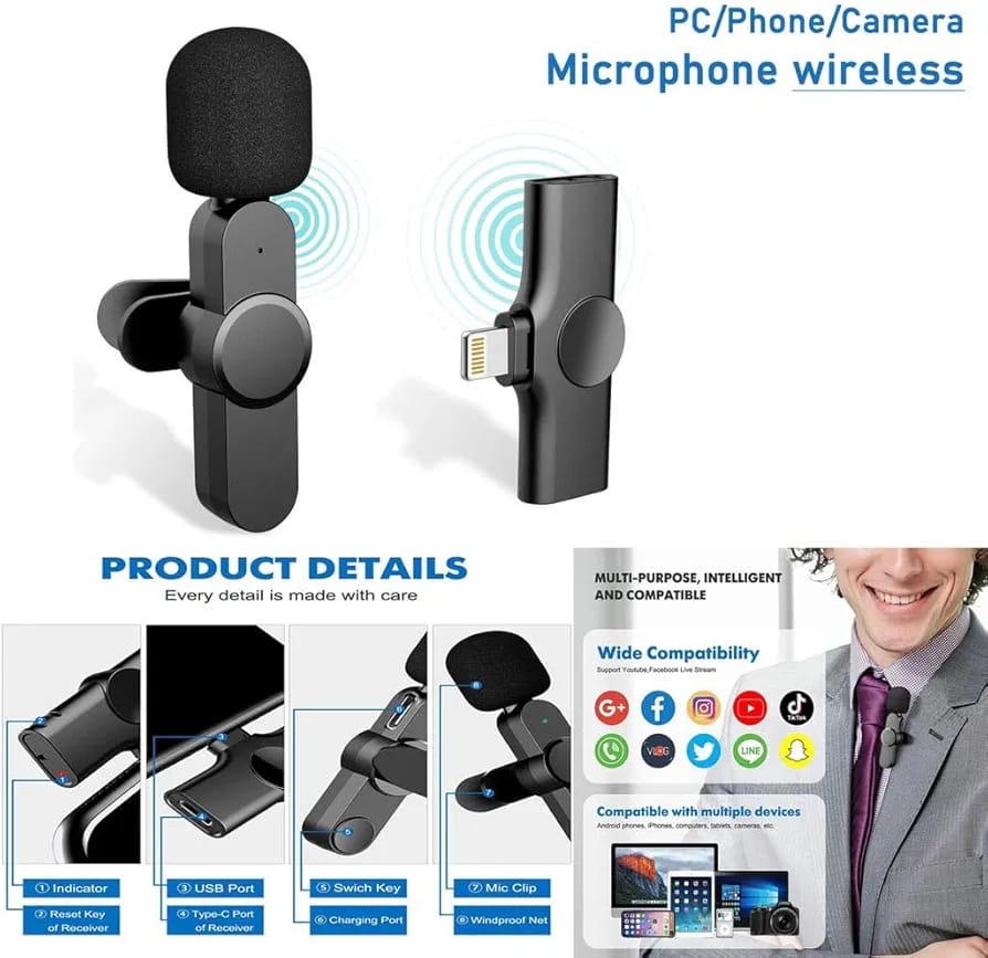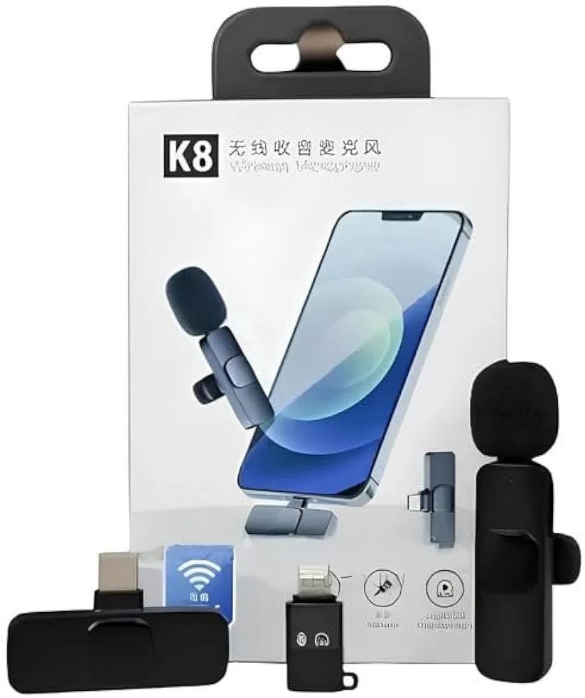 إذا كنت تبحث عن ميكروفون يوفر لك جودة صوت عالية وحرية حركة تامة، فميكروفون K8 هو خيارك الأمثل. صُمم لتلبية احتياجات المدونين والمؤثرين والمحترفين في مجال الصوت والفيديو، حيث يضمن لك تسجيل صوت واضح ونقي بفضل تقنيته المتطورة في التقاط الصوت.