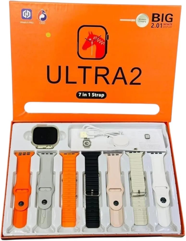 مع ساعة Ultra 2، هتلاقي كل اللي محتاجه في ساعتك الذكية. شاشة كبيرة بحجم 2.01 بوصة، شحن لاسلكي، وتصميم أنيق مع 7 أحزمة مختلفة. عيش تجربة فريدة مع ميزات صحية ورياضية متقدمة، عمر بطارية طويل، ومقاومة للماء. تقدر تستخدمها في أي وقت وأي مكان!